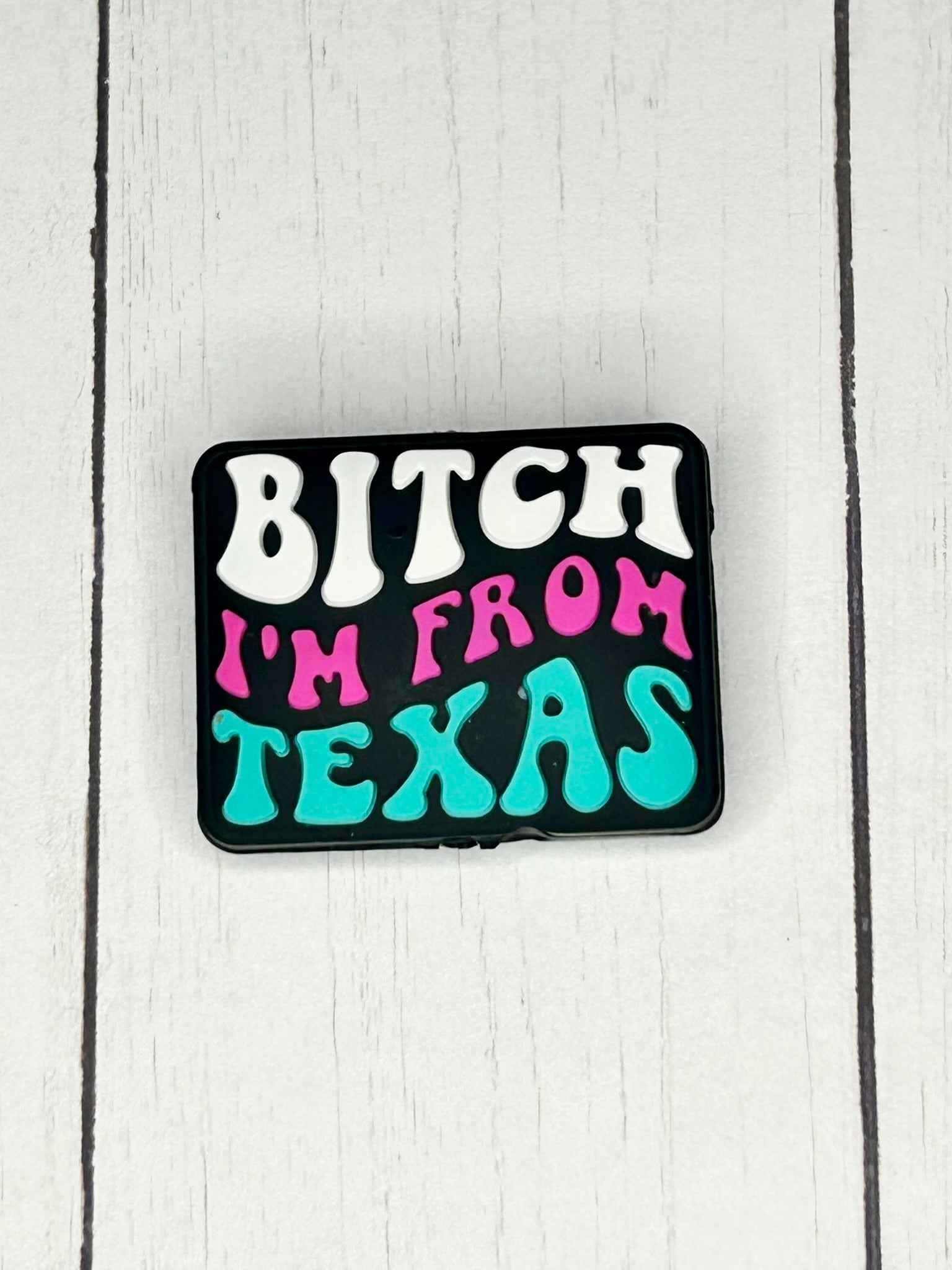Let your projects reach new heights with this distinctive Focal Bead. Bring a pop of personality to your creations with this one-of-a-kind Focal Bead. Set your imagination free and let your artistic side shine with this playful and unconventional addition! You'll definitely make a statement and inject a touch of eccentricity into any project. Get ready to elevate your style with the "Bitch I'm From Texas" Focal Bead.