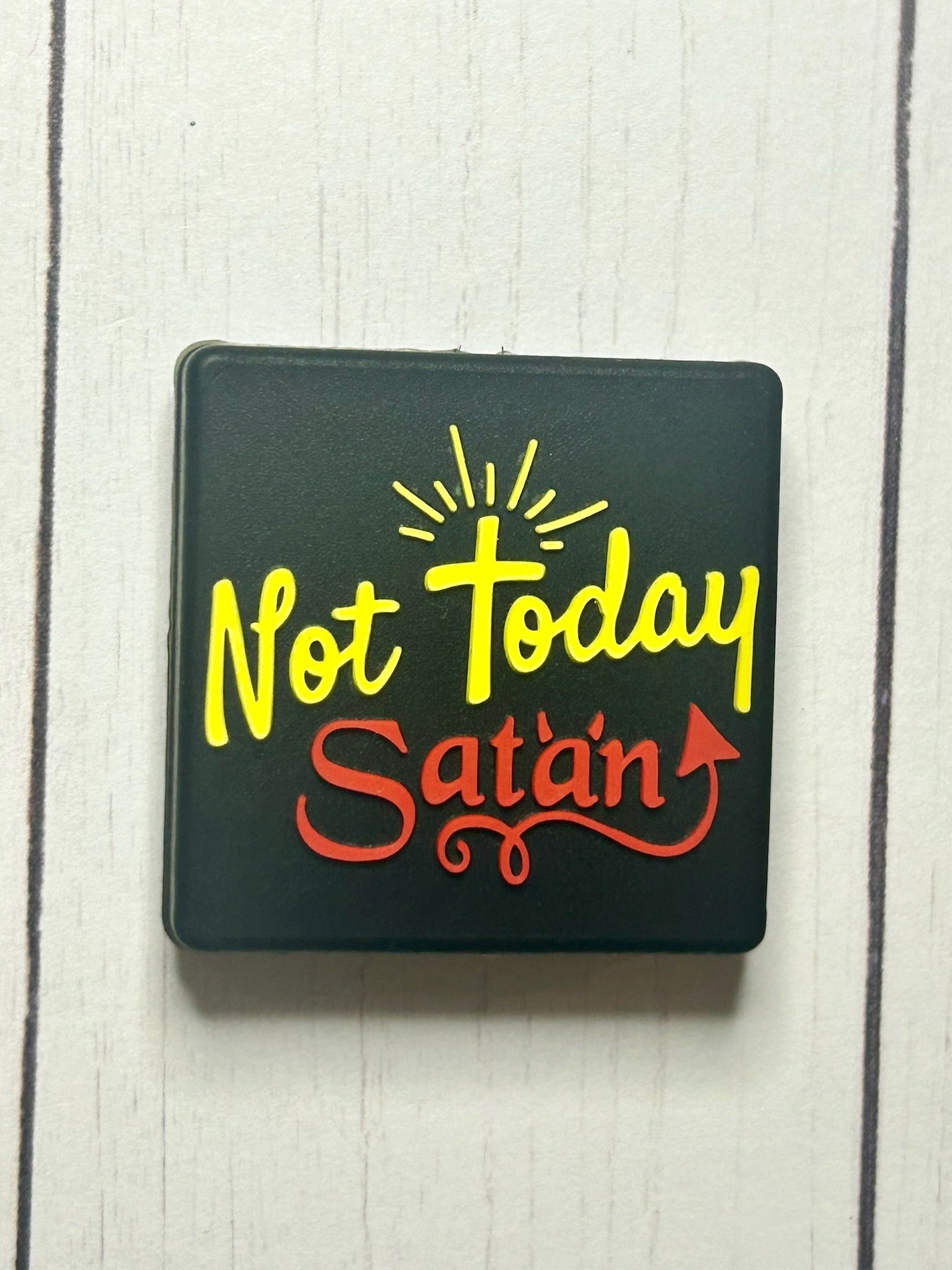 Embrace your inner rebel with our "Not Today Satan" Focal Bead. Perfect for DIY crafting, this bead adds a touch of sass and attitude to any project. Say it loud and proud - not today, Satan! (Crafting supplies have never been this much fun!)