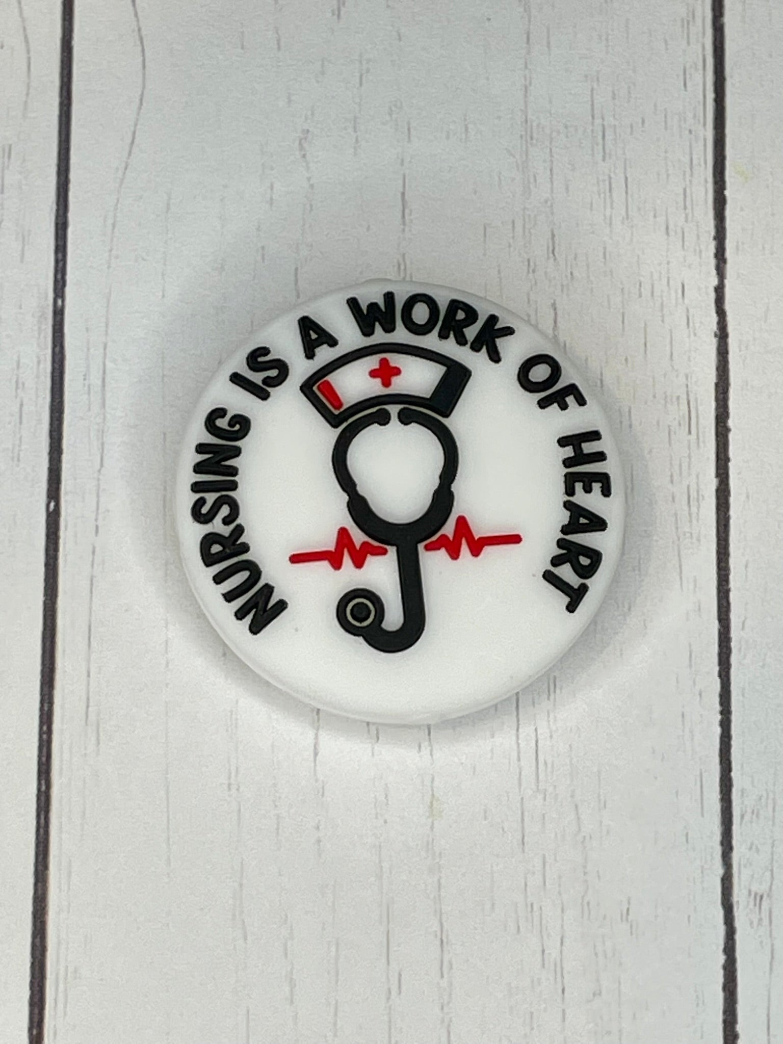 Show your love for nursing with our "Nursing Is A Work Of Heart" Focal Bead! Add it to your DIY crafting projects for a playful touch. Because let's face it, nursing is tough work, but it's also a labor of love. (Pun intended.)