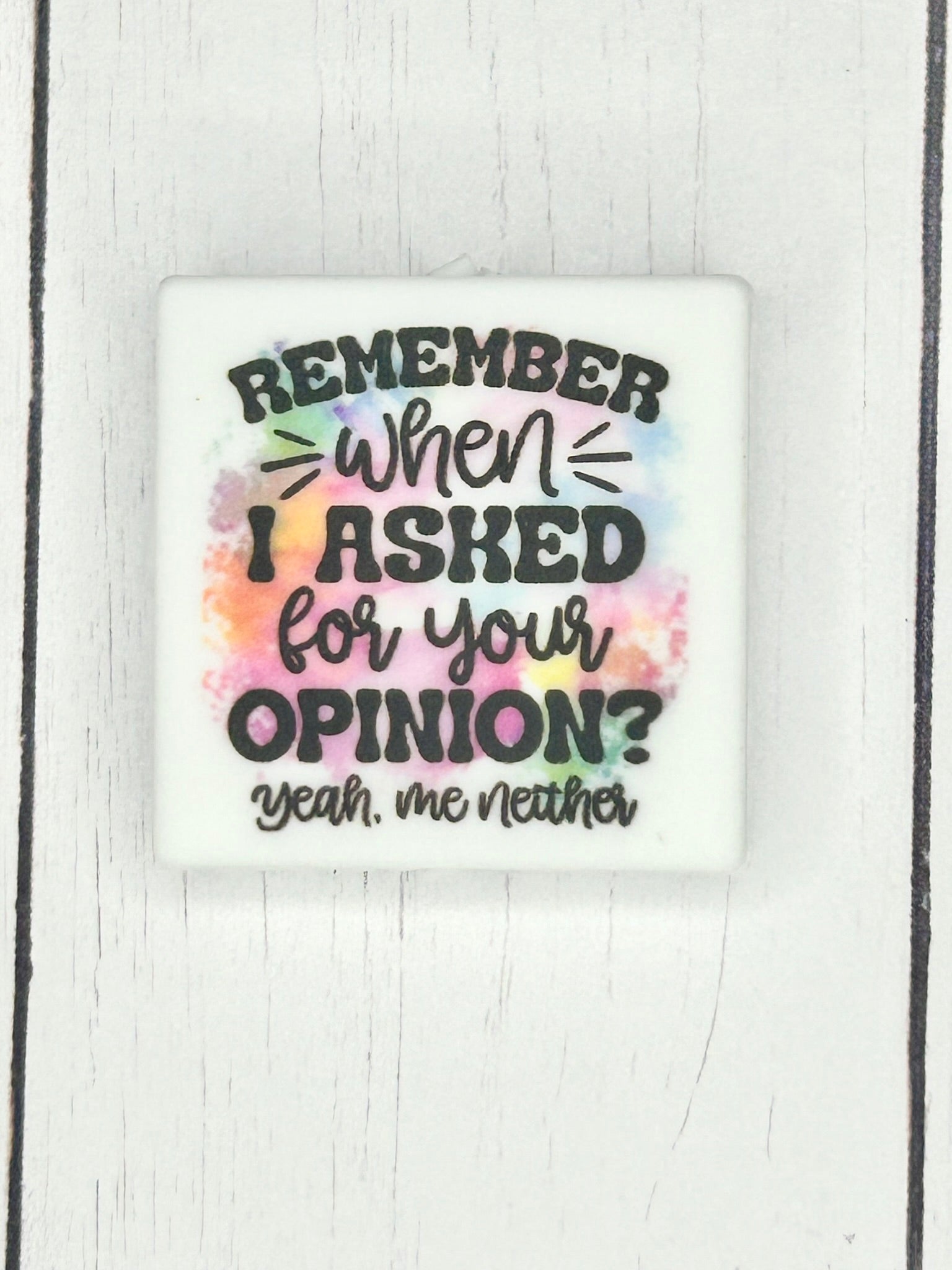 Enhance your designs with our "Remember When I Asked For Your Opinion, Yeah Me Neither" featured print focal bead. Add some personality and a hint of spunk - because who wants to be ordinary? With a dash of wit, your accessories will make a statement and showcase your distinct style. So don't settle for boring, unleash your creativity and let our charm revive your creations!